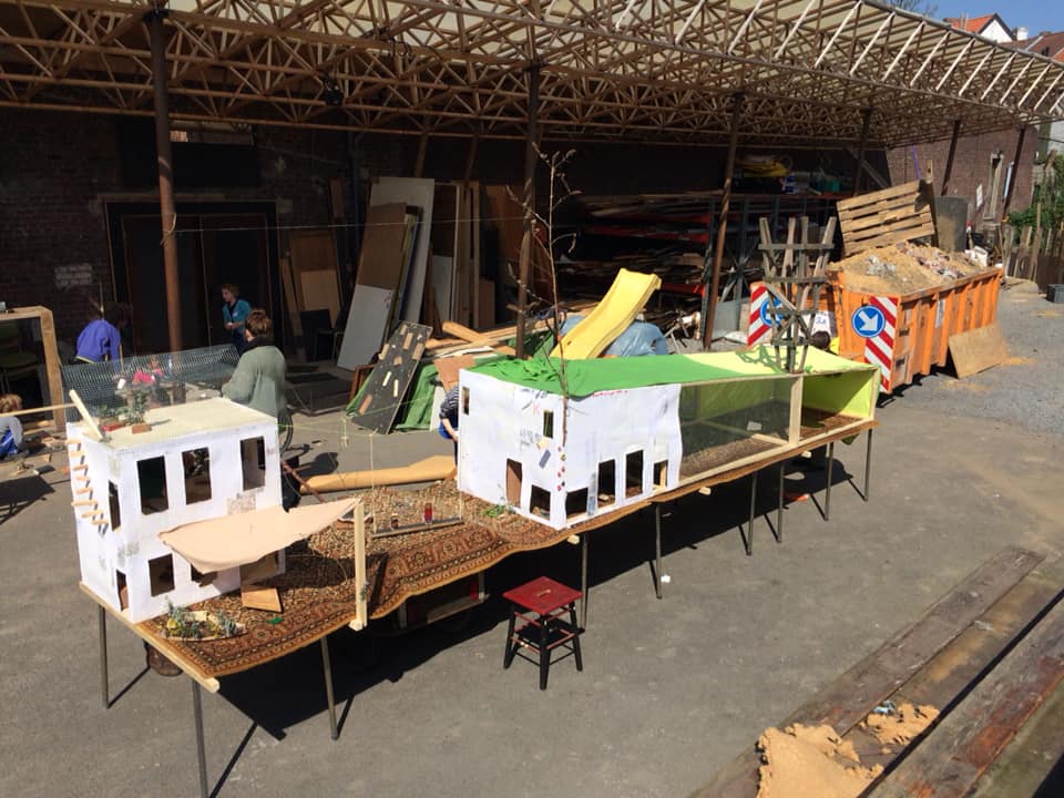 De Koer verbouwt ! Verbouwt constant, maar nu echt. Gedurende het gehele traject van vergunningsaanvraag doorheen uitvoering denkt en doet Dear Pigs mee. Een workshopweek met de Koerkinderen - Kinderen Baas - met een grote maquette om de site in het klein al eens te verbouwen. Een residentie om het Koervolk te leren kennen en ter plaatse een inventaris te maken van alle materialen op de site.
